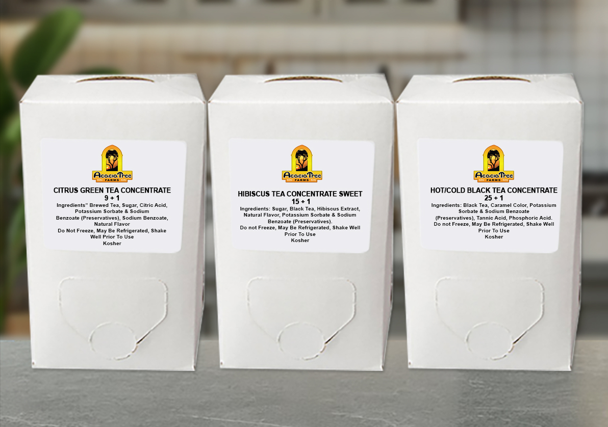 Elevate your tea experience with Acacia Tree Farms’ premium concentrates. From the bold richness of Hot/Cold Black Tea to the refreshing zest of Citrus Green Tea with Lemon, and the vibrant, fruity notes of Hibiscus Berry Pomegranate, our teas are crafted for versatility and convenience. Perfect for hot or iced beverages, each tea delivers exceptional flavor with every pour.
